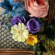 花材:日本大地农园-庭园玫瑰、百日草、绣球花、米香花、东方黑种草、尤加利叶、羊齿蕨、佳那莉等