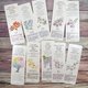 本系列以十种不同花树为主题,搭配专属创作诗句,传递属于每个灵魂的季节消息。正面为手绘水彩树木,背面则为花语诗句与花朵介绍,中文与英文并列,双语对照更具收藏价值。