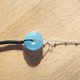 有别于一般平安扣,用的是特别圆滚滚的面包平安扣款式,如同蓝莓贝果般令人想咬一口,每种矿石因产地会有所差别,此款海蓝宝不透多棉,蓝度是很美的莫兰迪色调,特别是拿去灯光下,侧面在转动间有白色波光感觉,这是专属纳米比亚产地的共生矿海蓝宝,是很适合夏天的小清新款。