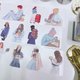 PET笔记本装饰胶带,背面有离型纸,可以很容易地按照图片切割,切割后剥离粘贴。 全卷:尺寸 6 cm x 10 m 采样器:14种图案(胶带长度约75cm) 1 个循环有 14 种设计