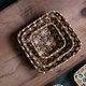 以经典的六角孔变形的美丽的菊花纹,作为桌上的浅盘,能够承装餐桌上的干食与生活中的各式小物。六角孔的织法是竹工艺中经典技法之一,以烟熏竹篾为主体搭配原竹来编织,让浅盘拥有天然迷人的熏香。
