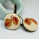 绣有秋叶的手工耳环。 图案是我设计的,也是我绣的。 我在每幅刺绣图片中使用最大数量的颜色,使其更加逼真和丰富多彩。 这些棕色的叶子是用棉绣线绣在亚麻织物上的。 细节: - 每轮为 20 mm (0,8" ) - 耳环总长度为 32 毫米(1,3 英寸) - 材质:黄铜耳环底座,棉。