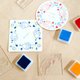 在方形杯垫上重复盖印 4 次,即可完成装饰。