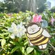 一家四口和胖橘猫多宝和养着一棵不想被吃的菜。