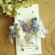 - 抛开编织书的绊束,随心地编织出碎碎小花,紫阳花似的渐变色绣线美丽动人,当中一支絮花更是用 ”银线” 单条编织,配上水晶,是非常轻盈的垂坠耳环。