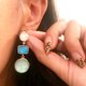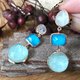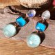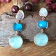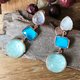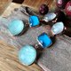- 11x8mm 梨形彩虹月亮石配 7x9mm 枕形及14mm 圆形天河石镶白水晶纯银长耳环