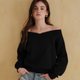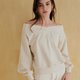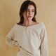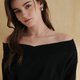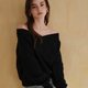 【CReAM】秋冬V领一字领露肩平口长袖T恤棉质女上衣 米色/黑色 MIT台湾制 (共2色)