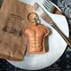 肤色的原色皮革塑型成冰块盒腹肌,逼真呈现完美的精壮身材