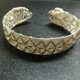 难度中高级程度的Mirror Image金属线编织,首先以7条金属粗线为底,搭配金属细线编织,一线一线的把图案编织好后,再用另外7条金属粗线为底, 编织一次同样的图案, 最后将这二部份对齐编织结合,最后二端用不同方式的绕线图样作结束。