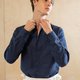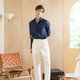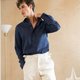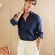 Solstice's Weekday shirt collection, linen men's spread collar handmade long sleeve shirt. - Blue Color