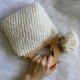 包身采用手工钩针编织的圆形针法组织而成,加上纯羊毛毛线,手感厚实柔软。为寒冷的冬季增添暖手暖心的触感与视觉。