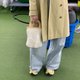 因为侧身厚度较大,外加毛线编织的组织,包身柔软拉伸度佳,虽然包包看着蛮小,但其实很能装喔。