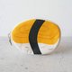 This is a sushi-shaped pouch made by dyeing canvas with silkscreen.
