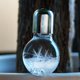羽状结晶特写,玻璃瓶底下可以看到晶透的冰晶碎钻。