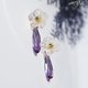 以雕刻成菊花形状的水晶,搭配翠绿的橄榄石与紫水晶,