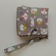 尺寸:长 14cm *宽 12cm *侧边 4cm, 小型手拿包,较长的手持把设计, 挂在手腕或挂在包包内、外侧, 可放零钱、钥匙、悠游卡、健保卡或 卫生棉棉包