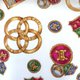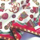 边缘装饰着星星及绿、白、红相间的波浪缎带,并点缀着金色细节。边缘采卷边处理。