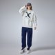 【设计商品说明:羊羔绒卫裤/采用彩点羊羔绒面料具有一定的厚度和重量,这赋予了它出色的保暖性能。创意字母,采用锁链绣工艺,增加立体感。裤侧贴袋上有织唛,增加层次感与立体感。俩侧斜插袋彩条包边,增加实用性。适合多种搭配。】