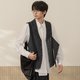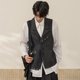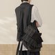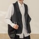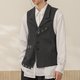 【咏叹】森系复古 格条纹拼接双层翻页腰带马甲 - 男装外套 - 其他材质 灰色