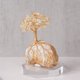 “聚宝盆-永生水晶树”是以黄水晶与晶洞结合注金工艺线编制而成。底部使用缠绕的方式包裹着晶洞,展现出根系生长的姿态,顺着枝干向上攀升的过程,逐渐展现出花木的生长方式,结上一颗颗的黄水晶,犹如枝叶绽放,绚丽而生动。