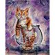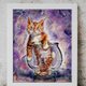 一只可爱的姜小猫的肖像。他对这个世界着迷,充满好奇心,但仍然感到害怕。玻璃玻璃是它的庇护所,但猫咪已经被困在里面了。他渴望探索没有玻璃屏幕的世界。主色调是不同深浅的紫色,从暖粉色调到深蓝色调的混合。
