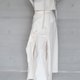 这款宽裤选用来自日本的高品质棉麻混纺布料,手感自然舒适,透气轻盈。裤身以大打褶设计营造立体宽松轮廓,穿着自在且具造型感。后方附有实用口袋,细节处点缀可自由活动的绑带坠片,增添灵动层次。不收边设计带出自然随性的手感,是一款结合实穿与风格的百搭单品。