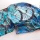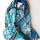 **蓝色,钴蓝色和浅蓝色围巾,蝴蝶翅膀画在纯丝绸上,5,