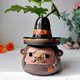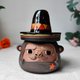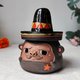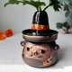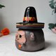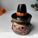 Handmade small flower vase. Brown monkey vase in a mexican cowboy design.