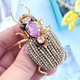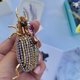 - Beetle jewelry brooch, bug pin. Brooch has a size 2.6"x1.4". This brooch is embroidered high-quality japanese beads, rhinestone ribbons and crystals. Not vegan, back side made of natural suede.