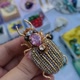 This brooch is embroidered high-quality japanese beads, rhinestone ribbons and crystals.