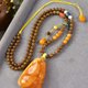 **〔 简介 〕:**天然俄料鸡油红花蜡 葫芦牌吊坠 工艺精湛 福禄吉祥 高品质无瑕疵 尺寸:53.42.15mm净重约为22.6克左右 套重:53.3克。搭配重工编制多宝蜜蜡,南红且末糖和田玉链子 品质非常好 大大漏。 进店关注店铺送优惠券!
