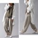 These pants look simple but not too simple with the straight line on the center. I really like this loose-fitting silhouette. The length is slightly long on me so I'll alter the length shorter.
