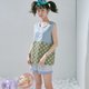 两种不同材质的布料拼接而成,虽然都是点点,但大小跟呈现方式不同,是件有趣的背心,他只有一件现货。