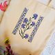 包款尺寸为 35x43 厘米,提把长度 30 厘米,内有附口袋的内衬,外部材质为厚实棉布,内衬材质为亚麻布,以磁扣开合,刺绣图案灵感取自白俄罗斯传统毛巾。