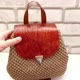 针织背包,真皮饰边,内有皮革口袋,顶部手柄,金属夹和可调节肩带。 底座的大致长度为10英寸,高度-11英寸,宽度-6英寸。 没有衬里