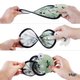② 双手一正一反握着,分别反向扭转,扇子会缩成小圆