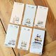 尺寸:6.5*13cm 纸质:70象牙卡,封面240p象牙卡 单面印刷 5款设计各20张,总计100张。"