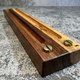 乌金木笔盘,长方体简约造型,以桧木为主木料,全手工切割、挖孔并保养上油,搭配手作铜片装饰、铆钉固定、纯黄铜螺丝,制作而成的独一无二的笔盘,可放置两支常用的爱笔,避免爱笔碰撞的同时还能方便拿取,放置于桌面更能提升视觉的享受