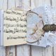 Vintage roses notebook contains: tea dyed paper, archival papers, lace, charms, fabric cover. Hardcover but with fabric on it.