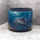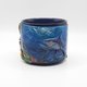 杯子外面是蓝色光泽的,里面是彩色釉的。