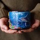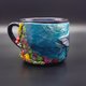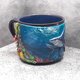 杯子正面的艺术品是用聚合物粘土手工雕刻而成,烘烤至硬度,手绘并涂有清漆。