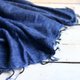 - 此款披肩也很合适作为居家的毛毯 以及沙发上的盖毯 没有扎感舒适柔软 宝蓝的基底混了一点浅蓝与白色的织纹 让色调较为多层次搭配单宁色系的衣服也很适合~ 可以作为室内的居家使用 或者带出门抓成斗蓬式的披肩!
