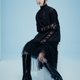 烦恼心黑色不规则不对称蝴蝶结纱裙,上面有许多手缝的小蝴蝶结。 含内里