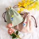 这款带有角撑板的抽绳小袋采用兔子形状,饰有许多花朵和叶子。