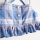 篮紫色为基调的格纹布料,视觉上就先达到降温效果,舒适的棉麻材质让宝贝穿着美美的同时也透气凉爽,短版设计搭配牛仔裤或当成外小背心都既可爱又时尚。