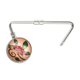 本图案选自国立故宫博物院院藏之清乾隆内填珐琅番莲纹提篮的图样和金属配件结合变成为皮包扣(镀镍),运用景泰蓝的丰富色彩让产品亮起来;使用时将产品展开,景泰蓝向上平放在桌面;勾角向下就可垂挂皮包。方便外出用餐时携带使用。景泰蓝皮包挂勾可吊挂最大承重量约5公斤。