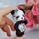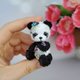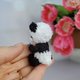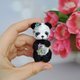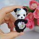 Meet our adorable miniature crocheted collectible teddy panda bear! This little bear stands at just 7.5 cm tall and features movable head and paws. With beautiful embroidered flowers and butterflies, this bear is truly a one-of-a-kind collectible. Perfect for adding to your collection or as a special gift for the teddy bear enthusiast in your life. Order yours today!