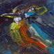 具有大量油冲程的微型。将画贴在纸板上。作者的原创作品单份。