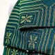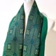 这件作品以饱和的祖母绿色为底,织出连续而华美的几何图形。