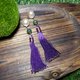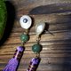 怀旧女孩:纯银耳环紫色- 天然淡水珍珠、天然翡翠、传统流苏及黄铜配件(香港手制/派对/复古设计)